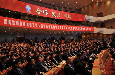 12月26日,國務(wù)院國資委與浙江省政府在杭州簽署《浙江省人民政府與國務(wù)院國有資產(chǎn)監(jiān)督管理委員會合作備忘錄》,并共同舉辦浙江與中央企業(yè)合作洽談會,商定在“十二五”期間,共同推進(jìn)中央企業(yè)與浙江進(jìn)行深入和廣泛的戰(zhàn)略合作,充分發(fā)揮浙江區(qū)位優(yōu)勢,促進(jìn)多種所有制企業(yè)共同發(fā)展。國務(wù)院國資委主任、黨委書記王勇與浙江省委副書記、代省長夏寶龍代表雙方簽署合作備忘錄。浙江省委書記趙洪祝出席儀式并講話。國務(wù)院國資委副主任黃丹華、金陽,副秘書長郭建新出席簽字儀式。