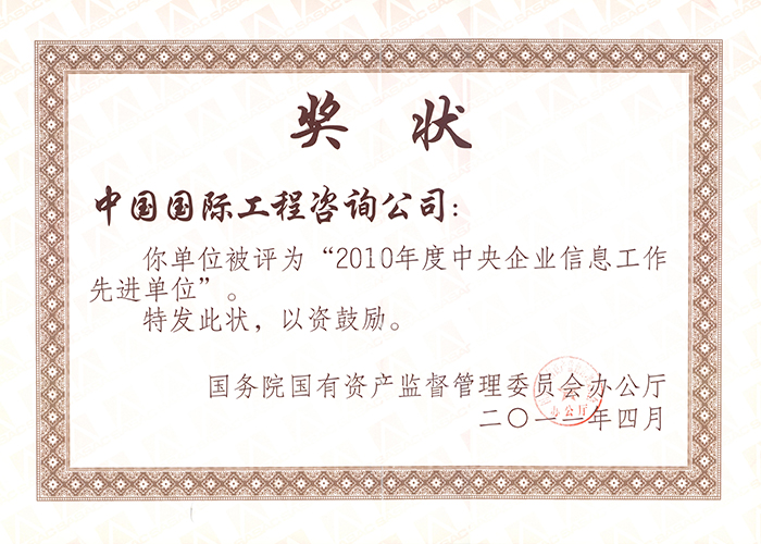 2010年度中央企業(yè)信息工作先進(jìn)單位
