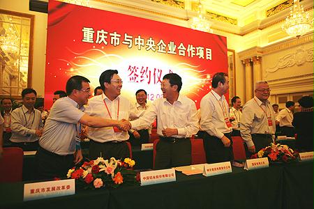 5月16日下午,重慶市與中央企業(yè)項(xiàng)目合作簽約儀式在渝隆重舉行,標(biāo)志著雙方的戰(zhàn)略合作進(jìn)入全面發(fā)展、深入推進(jìn)的全新階段。國(guó)務(wù)院國(guó)資委主任王勇和重慶市市長(zhǎng)黃奇帆講話(huà),國(guó)務(wù)院國(guó)資委副主任邵寧、黃丹華出席儀式。