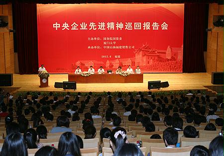 本場(chǎng)報(bào)告會(huì)是中央企業(yè)先進(jìn)精神巡回報(bào)告會(huì)首次在大學(xué)舉辦。報(bào)告會(huì)由國(guó)務(wù)院國(guó)資委和廈門大學(xué)共同主辦。