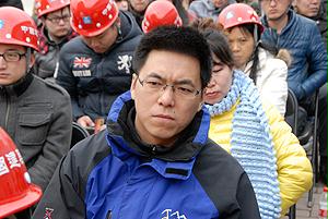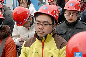 國(guó)資委機(jī)關(guān)青年志愿者與喬老在工地前合影