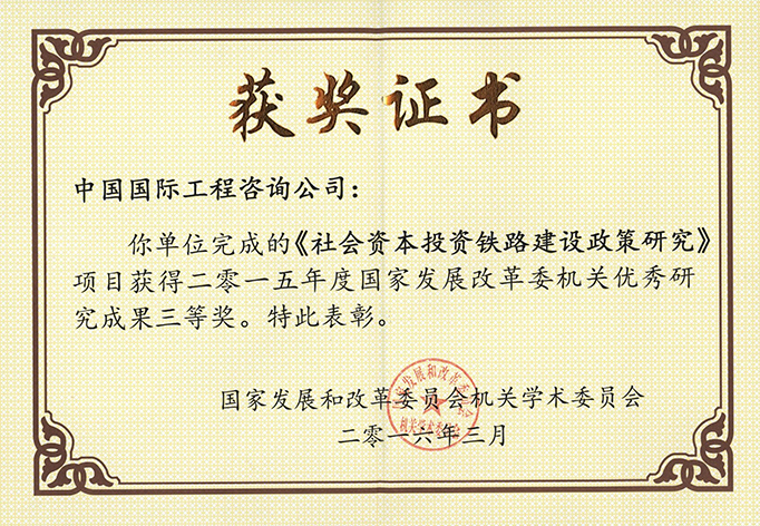 2015年度國家發(fā)展改革委機(jī)關(guān)優(yōu)秀研究成果三等獎(jiǎng)