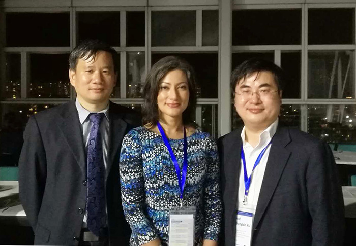 圖3  英國《BBC世界新聞》制片人兼主播Sharanjit Leyl(中間)與中咨公司研究中心李開孟主任和徐成彬處長合影