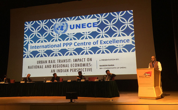 圖7  印度BBV咨詢公司管理負責(zé)人、聯(lián)合國歐經(jīng)會城市軌道交通PPP標準制定專家組成員納里什·巴納(Naresh Bana)介紹城市軌道交通在國家和區(qū)域經(jīng)濟中的影響