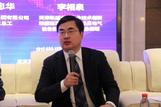 ?。ㄌ旖蜍壍澜煌óa(chǎn)業(yè)技術(shù)創(chuàng)新聯(lián)盟理事長(zhǎng)、天津益昌電氣設(shè)備股份有限公司總經(jīng)理李相泉在圓桌論壇關(guān)于“基于可持續(xù)發(fā)展理念的城市軌道交通工程方案設(shè)計(jì)優(yōu)化”發(fā)言)