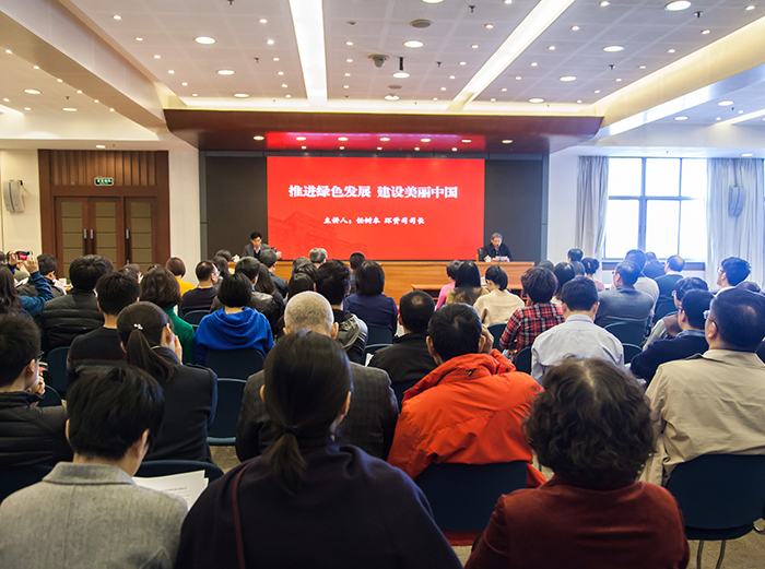 為進一步學習貫徹黨的十九大精神,深刻領(lǐng)會習近平總書記關(guān)于生態(tài)文明建設的系列講話精神,指導公司更好地開展相關(guān)工作,3月15日上午,公司邀請國家發(fā)展和改革委員會資源節(jié)約和環(huán)境保護司司長任樹本,以《推進綠色發(fā)展 建設美麗中國》為題作專題講座。公司領(lǐng)導、資深專家,公司各部門和所屬企業(yè)職工170余人參加。公司黨委副書記、副總經(jīng)理楊東民主持講座。 國家發(fā)改委環(huán)資司司長任樹本做講座 任司長系統(tǒng)講授了習近平總書記關(guān)于生態(tài)文明建設的重要思想,指導大家深刻理解黨的十九大提出的我國生態(tài)文明建設新目標,分析了我國生態(tài)文明建設工作的有力條件和面臨挑戰(zhàn),并明確指出環(huán)資司將以“堅決打好污染防治攻堅戰(zhàn)、推動形成綠色發(fā)展新動能、廣泛推行綠色生活方式、構(gòu)建綠色空間開發(fā)保護格局、著力提高資源產(chǎn)出效率、深入推進體制改革和法治建設、積極參與全球環(huán)境治理”為重點抓手,推動形成人與自然和諧發(fā)展現(xiàn)代化建設新格局。 講座現(xiàn)場 楊東民副總經(jīng)理要求廣大干部職工結(jié)合工作實際,認真學習領(lǐng)會講座內(nèi)容,在提供咨詢服務的過程中自覺貫徹落實習近平總書記關(guān)于生態(tài)文明建設的重要思想,努力提高咨詢服務質(zhì)量,為滿足新時代提出的新要求,繼續(xù)真抓實干,為國家富強做出更大貢獻。 | |||||