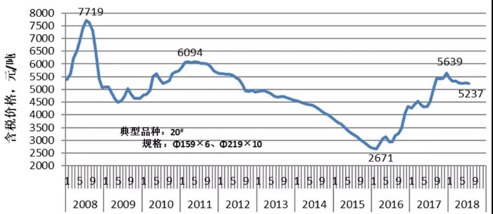 摘要:目前我國鋼管行業(yè)仍存在產(chǎn)能過剩、產(chǎn)業(yè)集中度低,特別是大型國企債務(wù)負(fù)擔(dān)重、成本高、競爭力不強(qiáng),且面臨貿(mào)易摩擦加劇等問題;本文通過簡述我國鋼管產(chǎn)業(yè)的發(fā)展概況,包括產(chǎn)量、表觀消費(fèi)量、進(jìn)出口情況及無縫鋼管價(jià)格走勢;分析目前我國鋼管行業(yè)發(fā)展存在的主要問題以及無縫鋼管產(chǎn)業(yè)面臨的形勢,并提出我國鋼管企業(yè)學(xué)習(xí)國外大型鋼管企業(yè)的發(fā)展經(jīng)驗(yàn),持續(xù)推進(jìn)產(chǎn)業(yè)整合的專業(yè)建議。 關(guān)鍵詞:鋼管;發(fā)展概況;問題;困境;建議 新中國誕生70年的歷程見證著我們偉大祖國的奮斗足跡,也見證著我國鋼鐵行業(yè)的飛速發(fā)展。這70年間,我國鋼管行業(yè)發(fā)生了翻天覆地的巨大變化。我國鋼管行業(yè),尤其是經(jīng)過近二十年的高速發(fā)展,在產(chǎn)品結(jié)構(gòu)、質(zhì)量水平、技術(shù)裝備等方面不斷得到優(yōu)化提升,已成為名副其實(shí)的世界鋼管制造大國,目前正在向世界鋼管工業(yè)強(qiáng)國邁進(jìn)[1-2]。 1 我國鋼管產(chǎn)業(yè)發(fā)展概況 我國鋼管的產(chǎn)能已占世界首位,大型無縫鋼管、大型焊接鋼管和不銹鋼管企業(yè)在產(chǎn)能規(guī)模上已經(jīng)進(jìn)入國際先進(jìn)行列。寶山鋼鐵股份有限公司(簡稱寶鋼股份)、天津鋼管集團(tuán)股份有限公司(簡稱天津鋼管)、衡陽華菱鋼管有限公司(簡稱華菱衡鋼)、內(nèi)蒙古包鋼鋼聯(lián)股份有限公司(簡稱包鋼)等無縫鋼管企業(yè)的產(chǎn)能進(jìn)入世界前10位;寶雞石油鋼管有限責(zé)任公司(簡稱寶雞鋼管)、渤海石油裝備制造有限公司(簡稱渤海裝備)、天津友發(fā)鋼管集團(tuán)股份有限公司(簡稱天津友發(fā))等多家焊管企業(yè)的產(chǎn)能進(jìn)入世界前5位;浙江久立特材科技股份有限公司(簡稱久立特材)的產(chǎn)能躋身于世界不銹鋼管材制造企業(yè)的前5位。我國大中型鋼管企業(yè)的裝備水平已經(jīng)達(dá)到國際先進(jìn)水平,無縫鋼管、焊接鋼管機(jī)組的種類、規(guī)格齊全,裝備新工藝先進(jìn)。 我國專用鋼管產(chǎn)品自給率達(dá)到99%以上。20世紀(jì)90年代中期,我國生產(chǎn)油井管的數(shù)量、品種和質(zhì)量都還遠(yuǎn)遠(yuǎn)滿足不了石油工業(yè)發(fā)展的需要。1949—1994年,45年間我國共消耗各種油井管1270萬t,其中進(jìn)口1150萬t,國產(chǎn)120萬t。1980年我國開始抓油井管的國產(chǎn)化,20世紀(jì)90年代,國家抓緊電站鋼材國產(chǎn)化工作,經(jīng)過近30年的發(fā)展,油井管國產(chǎn)化率從5%提高到目前的99%以上,我國也成為世界油井管生產(chǎn)基地。 1.1 生產(chǎn)情況 我國無縫鋼管產(chǎn)量2014年達(dá)到歷史最高水平后,受經(jīng)濟(jì)增速放緩、下游產(chǎn)業(yè)需求低落以及國際原油價(jià)格下滑等因素影響,2015年產(chǎn)量回落至2900萬t左右,2018年產(chǎn)量繼續(xù)下滑至2500萬t左右。同時(shí),隨著焊接鋼管生產(chǎn)技術(shù)的不斷改進(jìn),焊接鋼管產(chǎn)品質(zhì)量得到較大提升,取代了部分無縫鋼管產(chǎn)品,使得無縫鋼管產(chǎn)量在鋼管總產(chǎn)量中的占比呈現(xiàn)下降趨勢。我國無縫鋼管產(chǎn)量占鋼管總產(chǎn)量的比例由21世紀(jì)初的最高48%下降到目前的30%左右。1998—2018年我國無縫鋼管產(chǎn)量及其在鋼管中的占比情況如圖1所示。 2008—2017年我國無縫鋼管產(chǎn)量在世界無縫鋼管總產(chǎn)量中的占比情況如圖2所示。2006年我國無縫鋼管產(chǎn)量占世界總產(chǎn)量接近50%,2009—2017年達(dá)到65%-75%(2012年最高為74.6%)。 圖1 1998-2018年我國無縫鋼管產(chǎn)量及其在鋼管中的占比情況 圖2 2008-2017年我國無縫鋼管產(chǎn)量在世界無縫鋼管總產(chǎn)量中的占比情況 1.2 表觀消費(fèi)情況 2008—2018年我國無縫鋼管表觀消費(fèi)量情況如圖3所示。2008—2013年我國無縫鋼管表觀消費(fèi)量一直維持較快增速。2013年表觀消費(fèi)量達(dá)到峰值2641.8萬t后,隨著國內(nèi)經(jīng)濟(jì)增速趨緩,無縫鋼管消費(fèi)量開始下降,尤其油井管、長輸管線管、煤礦用支柱管等需求都有較大幅度的下降。2017年我國無縫鋼管消費(fèi)量下降至1715.4萬t。2018年消費(fèi)量恢復(fù)增長,表觀消費(fèi)量2082.2萬t,同比增長約21.4%,結(jié)束了連續(xù)4年的下降趨勢。2018年無縫鋼管市場需求回升,主要是受下游產(chǎn)業(yè)需求企穩(wěn)回升所致,尤其是石油價(jià)格的回升,拉動了油氣開發(fā)投資,進(jìn)而拉動油井管市場需求增長。 按照目前的消費(fèi)增長趨勢以及考慮消費(fèi)已進(jìn)入“峰值弧頂區(qū)”,預(yù)計(jì)2019—2025年我國無縫鋼管表觀消費(fèi)量不會超過2400萬t/年。 圖3 2008-2018年我國無縫鋼管表觀消費(fèi)量情況 1.3 進(jìn)出口情況 2000—2018年我國無縫鋼管進(jìn)出口情況如圖4所示。2018年,我國出口無縫鋼管422.5萬t,同比增長3.1%;主要出口品種是管線管(181.7萬t,同比下降8.1%,占無縫鋼管出口總量的43%),油井管(135.2萬t,同比增長19%,占無縫鋼管出口總量的32%),鍋爐管(16.9 萬t,同比增長11.9%,占無縫鋼管出口量的4%)。同年,我國進(jìn)口無縫鋼管25.8萬t,同比增長44.1%;主要進(jìn)口品種是鍋爐管(7.2萬t,同比下降18.8%,占無縫鋼管進(jìn)口總量的28%),油井