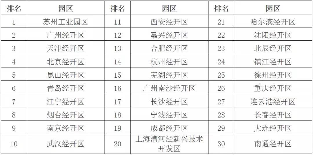 蘇州工業(yè)園區(qū) 表1 2019年國家級經開區(qū)綜合發(fā)展水平考核評價結果排名