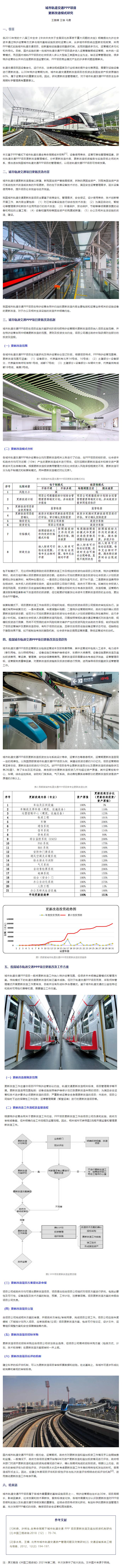 王鵬耀 王雄 馬勇 | 城市軌道交通PPP項(xiàng)目更新改造模式研究