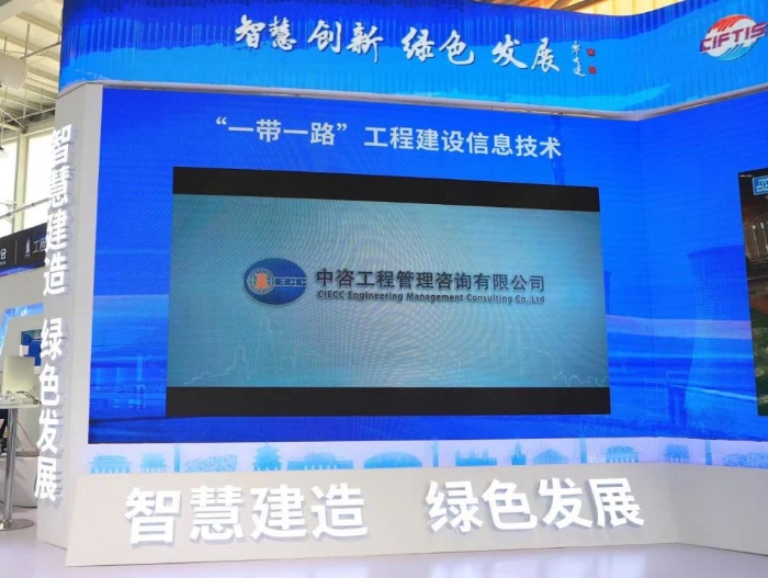 蔚藍(lán)色的展臺上,“智慧建造 綠色發(fā)展”八個大字格外引人注目。中咨管理公司《攜手共創(chuàng)中老鐵路“一帶一路”精品工程》專題宣傳片在屏幕上循環(huán)播放,展示公司服務(wù)綠色建造、開展“一帶一路”項目全過程工程咨詢的成果,吸引國內(nèi)外服務(wù)貿(mào)易商駐足觀看。