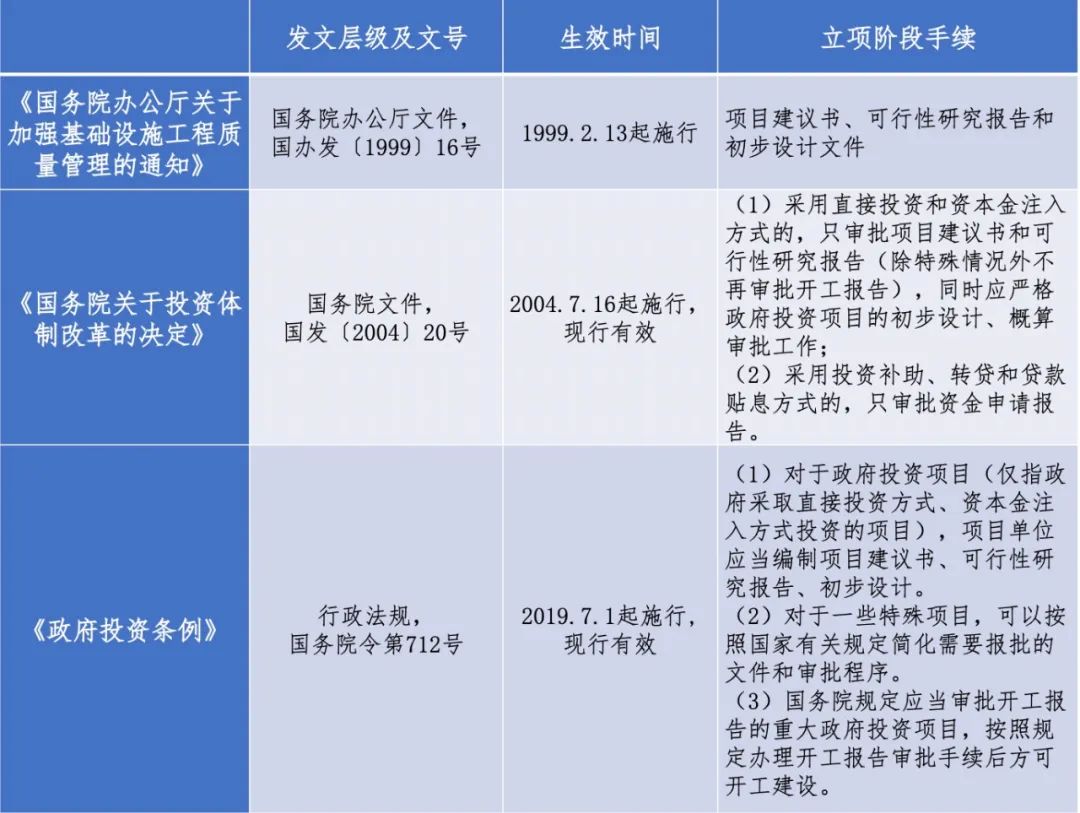 編者按 新中國成立以來,我國基礎設施投資建設取得了舉世矚目的成就,是國家經(jīng)濟社會發(fā)展的重要支撐,為人民生活水平的提高做出了巨大貢獻。改革開放以來,市場開始發(fā)揮配置資源的基礎性作用,為我國基礎設施的發(fā)展煥發(fā)了新的活力。據(jù)統(tǒng)計,我國基礎設施資產(chǎn)總規(guī)模在1990年排在全世界約第15位,2000年上升到第7位,2010年躍升為第3位,至2018年已居世界首位。 黨的二十大報告在回顧過去五年的工作和新時代十年的偉大變革中,充分肯定了基礎設施在經(jīng)濟社會中發(fā)揮的重要作用,報告指出,我國“建成世界最大的高速鐵路網(wǎng)、高速公路網(wǎng),機場港口、水利、能源、信息等基礎設施建設取得重大成就”。我國基礎設施多年來大規(guī)模的投資建設和存量資產(chǎn)的高速積累,是黨中央、國務院在建立社會主義市場經(jīng)濟體制背景下,關于投融資體制改革部署的重要成果。 項目前期工作手續(xù)的合規(guī)性要求,是基礎設施能夠發(fā)揮其應有價值的重要前提,也是投融資體制改革關注的重點內(nèi)容之一。伴隨著政府職能轉變、深化“放管服”改革和擴大有效投資等重大決策的關鍵部署,我國工程建設項目審批制度不斷優(yōu)化和改革,基礎設施項目投資前期決策管理經(jīng)歷了復雜的演變進程,其合規(guī)性標準也在與時俱進、不斷完善。當前我國已進入基礎設施存量時代,存量資產(chǎn)項目前期工作手續(xù)的合規(guī)性是重要的盤活條件之一,部分合規(guī)性問題已成為新時代社會廣泛關注的焦點。本項專題研究立足投融資體制和項目審批制度變革的歷史背景,嘗試厘清基礎設施項目在立項、土地、規(guī)劃、環(huán)境、建設施工等方面主要前期工作的歷史變革脈絡,梳理不同管理事項之間的邏輯關聯(lián),從這一視角提供基礎設施項目前期工作手續(xù)的合規(guī)性認識。本公眾號將研究報告的部分成果以系列文章的形式陸續(xù)刊發(fā),本文是研究報告的第一部分(背景與立項篇),供業(yè)界同仁參考。 基礎設施項目前期工作手續(xù)合規(guī)性研究(Ⅰ) 背景與立項篇 伍迪 張雪飛 摘要:基礎設施項目在建成運營后,其前期工作手續(xù)是隱藏于“工程實體”背后的“隱蔽工程”,像地基之于房屋、鋼筋之于梁柱一樣,是項目未來價值實現(xiàn)的內(nèi)在要求。具體而言,我國基礎設施項目前期工作手續(xù)的合規(guī)性,主要體現(xiàn)于立項、土地、規(guī)劃、環(huán)保、施工、竣工驗收等方面的手續(xù)流程是否完整、論證依據(jù)是否充分。對合規(guī)性的認識不應僅著眼于手續(xù)辦理承載的形式和程序,更應是蘊含于證照流程背后的內(nèi)涵和實質:看待合規(guī)性問題既要回歸歷史、正視當時的歷史背景和政策環(huán)境,又要審視當下、領會不斷完善的政策精神和改革要求;既要關注單獨手續(xù)事項是否依法合規(guī),又要關注不同手續(xù)事項間是否存在沖突和矛盾。在所有前期工作中,立項是基礎設施項目決策的核心內(nèi)容,立項制度伴隨著我國投融資體制改革而動態(tài)演進。當前我國固定資產(chǎn)投資項目分為審批、核準、備案三種立項方式,每種方式也有著不同的合規(guī)性要求。 關鍵詞:基礎設施;項目前期工作手續(xù);合規(guī)性;政策演進;立項。 一、研究背景 (一)固定資產(chǎn)項目投資管理制度改革不斷深化 改革開放以來,傳統(tǒng)計劃經(jīng)濟體制下高度集中的投資管理模式被打破,市場和政府的關系得到重新定位,市場開始發(fā)揮配置資源的基礎性作用,政府則主要解決市場失靈、公共利益的問題。伴隨著國家投資體制的深化改革,我國投資主體多元化、投資方式多樣化、項目建設市場化的新格局逐步形成。尤其是黨的十八大以來,政府投資管理體制持續(xù)創(chuàng)新,愈來愈強調(diào)政府過程服務和事中事后監(jiān)管的職能轉變。工程建設項目審批制度改革是黨中央、國務院在新形勢下作出的重大決策,也是推進政府職能轉變和深化“放管服”改革、優(yōu)化營商環(huán)境的重要內(nèi)容。為更好的擴大有效投資,近年來,推進重要項目協(xié)調(diào)機制,精簡審查環(huán)節(jié)、規(guī)范審批事項、減少審批要件、提高審批效率一直是項目審批制度改革的重要方向。 基礎設施是為社會生產(chǎn)和居民生活提供公共服務的物質工程設施,是用于保證國家或地區(qū)社會經(jīng)濟活動正常進行的公共服務系統(tǒng),是社會賴以生存發(fā)展的一般物質條件。基礎設施作為重要的固定資產(chǎn),在投資建設過程中應遵循國家固定資產(chǎn)投資管理制度的有關規(guī)定,其項目前期工作手續(xù)的有關要求也隨著固定資產(chǎn)投資管理制度的變化而不斷完善。 (二)項目前期工作手續(xù)合規(guī)性是存量資產(chǎn)盤活的必要條件 我國已進入基礎設施資產(chǎn)存量時代,基礎設施投資作為我國經(jīng)濟增長的壓艙石,曾長期保持高增長狀態(tài),2016年、2017年增長率分別為17.4%和19.0%。新常態(tài)下依靠新增基礎設施投資“穩(wěn)增長”“保增長”難以為繼,2018年、2019年連續(xù)兩年的增長率均為3.8%,2020年和2021年下滑至0.9%和0.4%(見圖1)。因此,基礎設施存量資產(chǎn)的有效盤活成為了當今的時代召喚。 圖1 我國基礎設