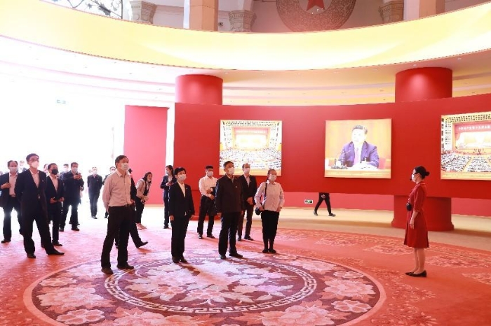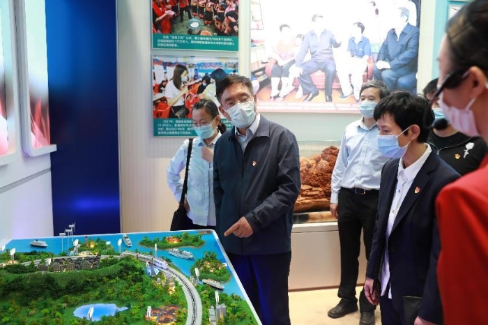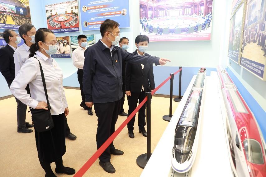 在參觀地方展區(qū)福建、廣東、海南、云南、青海、新疆、西藏等單元時(shí),茍護(hù)生和公司黨員干部不時(shí)駐足在FAST天眼、白鶴灘水電站、中老鐵路、三江源、雄安站、藏中聯(lián)網(wǎng)工程等模型、沙盤(pán)和圖片前,凝神深思,交流體會(huì)?;赝^(guò)去,中咨公司聚焦黨中央、國(guó)務(wù)院重大關(guān)切,為國(guó)家重大戰(zhàn)略、重大規(guī)劃、重大工程的科學(xué)決策提供高質(zhì)量咨詢服務(wù),加強(qiáng)高端智庫(kù)建設(shè),與咨詢業(yè)務(wù)形成共建互促新格局。公司參與粵港澳大灣區(qū)、海南自貿(mào)區(qū)區(qū)域發(fā)展戰(zhàn)略的研究制定;總結(jié)推廣福建“三明實(shí)踐”發(fā)展經(jīng)驗(yàn),助力革命老區(qū)騰飛;服務(wù)新時(shí)代黨的治疆方略,為新疆“十四五”高質(zhì)量發(fā)展論證儲(chǔ)備一批重大項(xiàng)目;參與雄安新區(qū)若干規(guī)劃咨詢服務(wù),承擔(dān)雄安站咨詢論證以及雄安市民服務(wù)中心工程監(jiān)理服務(wù);踐行“綠水青山就是金山銀山”理念,編制我國(guó)第一部國(guó)家公園規(guī)劃《三江源國(guó)家公園總體規(guī)劃》;評(píng)估論證南水北調(diào)、天眼、藏中聯(lián)網(wǎng)工程、白鶴灘水電站、“華龍一號(hào)”等一批重大工程,當(dāng)好國(guó)家投資建設(shè)的科學(xué)智囊;建言獻(xiàn)策,推動(dòng)中老鐵路從構(gòu)想變成現(xiàn)實(shí),參與中老鐵路評(píng)估論證及監(jiān)理服務(wù)……中咨人努力拼搏、銳意進(jìn)取的奮斗場(chǎng)景歷歷在目。大家對(duì)中咨公司以習(xí)近平新時(shí)代中國(guó)特色社會(huì)主義思想為遵循,以服務(wù)國(guó)家戰(zhàn)略為己任,將黨中央、國(guó)務(wù)院決策部署不折不扣落實(shí)到咨詢服務(wù)工作中,在“非凡十年”為黨和國(guó)家事業(yè)發(fā)展貢獻(xiàn)智慧和力量感到振奮和鼓舞。