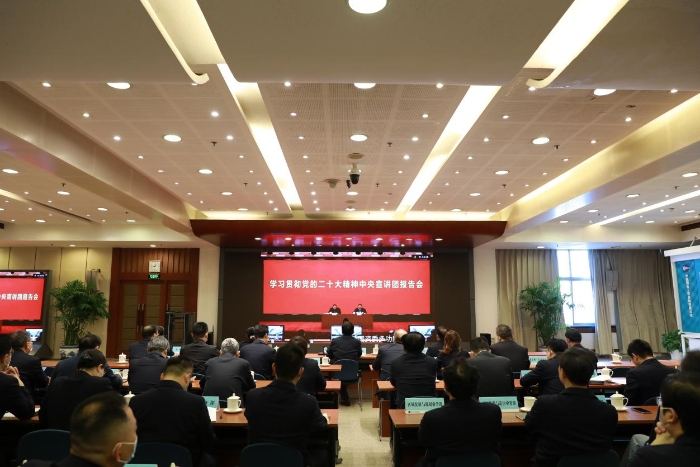 報告會上,田培炎從黨的二十大的重大意義、過去5年的工作和新時代10年的偉大變革、馬克思主義中國化時代化、中國式現(xiàn)代化、全面建設(shè)社會主義現(xiàn)代化國家的目標任務(wù)、堅持黨的全面領(lǐng)導(dǎo)和全面從嚴治黨等方面,對黨的二十大精神進行系統(tǒng)宣講和闡釋。他表示,“兩個確立”是黨在新時代取得的重大政治成果,是推動黨和國家事業(yè)取得歷史性成就、發(fā)生歷史性變革的決定性因素。要深刻領(lǐng)悟“兩個確立”的決定性意義,切實把“兩個確立”的政治共識轉(zhuǎn)化為“兩個維護”的實際行動,不折不扣貫徹落實黨的路線方針政策,全面學習、全面把握、全面落實黨的二十大精神。