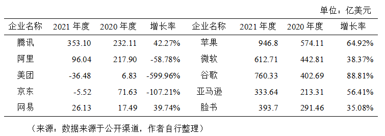 近年來我國數(shù)字經(jīng)濟規(guī)模整體呈現(xiàn)持續(xù)擴大趨勢,2005年我國數(shù)字經(jīng)濟規(guī)模為2.6萬億元,2021年擴張至45.5萬億元,在GDP中占比由14.2%提升至39.8%,市場規(guī)模位居全球第二,已經(jīng)成為名副其實的數(shù)字經(jīng)濟“大國”。然而,當(dāng)前面臨的數(shù)字經(jīng)濟增速放緩、頭部平臺企業(yè)市值下滑、營收不高、利潤率下滑、新增獨角獸企業(yè)數(shù)量下降等現(xiàn)象暴露出我國數(shù)字經(jīng)濟發(fā)展動能有所減弱,需引起高度重視。 01 數(shù)字經(jīng)濟創(chuàng)新發(fā)展動能減弱的幾個表現(xiàn) (一)數(shù)字經(jīng)濟增速出現(xiàn)放緩。近年來,在全球地緣局勢緊張、疫情反復(fù)及強監(jiān)管的影響下,我國數(shù)字經(jīng)濟的增長勢頭出現(xiàn)了放緩。數(shù)據(jù)表明,2014年~2018年間,我國數(shù)字經(jīng)濟的平均增速接近20%,2019年~2021年間,數(shù)字經(jīng)濟的平均增速為13.8%,尤其是2020年,增速僅為9.6%,較上一年下滑5.9個百分點。2021年同比名義增長16.2%,但與2017~2018年間連續(xù)維持20%以上的名義增速,2002年~2018年間實現(xiàn)了208倍的歷史跨越相比,仍存在下滑趨勢。 圖1 2014-2021年我國數(shù)字經(jīng)濟增速 來源:數(shù)據(jù)來源于公開渠道,作者自行整理 (二)頭部數(shù)字平臺企業(yè)市值下滑嚴(yán)重。截至2022年3月底,我國平臺企業(yè)中市值排名前5位的依次是騰訊、阿里、美團、京東和網(wǎng)易,其中騰訊市值4594億美元,同比下降39.78%,阿里市值2949億美元,同比下降52.59%,美團市值1228億美元,同比下降46.32%,下滑幅度均超過三分之一。美國平臺企業(yè)中市值排名前5位的依次是蘋果、微軟、谷歌、亞馬遜和臉書,其中蘋果市值28500億美元,同比上漲38.96%,微軟市值23110億美元,同比上漲29.98%,谷歌市值18420億美元,同比上漲32.23%,上漲幅度均超過四分之一。過去的一年間,中美互聯(lián)網(wǎng)平臺企業(yè)的市值差距越來越大。 表1 中美前5大數(shù)字平臺企業(yè)市值對比 (三)頭部數(shù)字平臺企業(yè)營收整體不高。營業(yè)收入方面,2021年度我國平臺企業(yè)營收實現(xiàn)增長。其中京東營業(yè)收入1475.01億美元,同比增長27.59%,阿里營業(yè)收入1322.33億美元,同比增長18.93%,騰訊營業(yè)收入868.17億美元,同比增長16.19%;美國平臺企業(yè)中亞馬遜營業(yè)收入4698億美元,同比增長21.7%,蘋果營業(yè)收入3658億美元,同比增長33.44%,谷歌營業(yè)收入2575億美元,同比增長41.21%。我國京東、阿里的營業(yè)收入均不足亞馬遜的三分之一,且我國前5大平臺企業(yè)差距較大,美團和網(wǎng)易的營業(yè)收入僅為277.61億美元和135.79億美元,我國前5大平臺企業(yè)的平均營業(yè)收入不足美國前5大平臺企業(yè)的30%。 表2 中美前5大數(shù)字平臺企業(yè)營業(yè)收入對比 (四)頭部數(shù)字平臺企業(yè)利潤出現(xiàn)持續(xù)下滑。利潤方面,2021年度我國平臺企業(yè)利潤下滑嚴(yán)重,其中美團和京東出現(xiàn)了凈虧損。具體來看,美團虧損36.48億美元,同比下降599.96%,京東虧損5.52億美元,同比下降107.21%,阿里凈利潤為96.04億美元,同比下降58.78%;美國平臺企業(yè)中蘋果凈利潤946.8億美元,同比增長64.92%,谷歌凈利潤760.33億美元,同比增長88.81%,微軟凈利潤612.71億美元,同比增長38.37%,亞馬遜和臉書的凈利潤均超過300億美元。我國前5大平臺企業(yè)的平均凈利潤不足美國前5大平臺企業(yè)的15%。 表3 中美前5大數(shù)字平臺企業(yè)利潤對比 (五)頭部數(shù)字平臺企業(yè)營收結(jié)構(gòu)側(cè)重消費者業(yè)務(wù)。收入結(jié)構(gòu)方面,我國前5大平臺企業(yè)更依賴電商、游戲、外賣等面向消費者的業(yè)務(wù),企業(yè)營收仍集中在國內(nèi)市場,美國前5大平臺企業(yè)更依賴智能云服務(wù)、硬件服務(wù)和電商,面向更廣闊的全球市場。 表4 中美前5大平臺企業(yè)收入結(jié)構(gòu)對比 (六)獨角獸企業(yè)數(shù)量增長明顯減速。無論是獨角獸企業(yè)的新增數(shù)量還是準(zhǔn)獨角獸企業(yè)的形成數(shù)量,我國都滯后于美國甚至印度。2018年以來的中美貿(mào)易摩擦以及2021年初以來的平臺經(jīng)濟“強監(jiān)管”政策都加速了新增獨角獸公司的數(shù)量的全球分化。根據(jù)最新榜單,中國的新興獨角獸公司有27家,落后于印度的32家,2021年中國新增獨角獸企業(yè)僅3家,明顯落后于美國的132家。在全球數(shù)字經(jīng)濟的競爭格局中“不進則退”。 圖2 2010~2021年中美新增獨角獸企業(yè)對比 來源:數(shù)據(jù)來源于公開渠道,作者自行整理 02 正確認識和把握數(shù)字經(jīng)濟的幾個關(guān)系 (一)在持續(xù)發(fā)展中實現(xiàn)安全。面對安全和發(fā)展,要把發(fā)展擺在首位,是第一要務(wù),通過發(fā)展來解決安全問題。從國際競爭的角度來說,數(shù)字經(jīng)濟發(fā)展放緩就意味著國家的安全隱患增加。涉及個人隱私和國家信息安全的問題,可以利用技術(shù)發(fā)展來尋求解決的辦法,比如區(qū)塊鏈就在智能合約中發(fā)揮著重要作用,區(qū)塊鏈技術(shù)把可能出現(xiàn)的造假都從技術(shù)上堵住了,又如保護個人隱私問題,有了隱私計算技術(shù)就可以實現(xiàn)對數(shù)據(jù)“可用而不可見”,既保護個人隱私又讓數(shù)據(jù)得以流通和使用。故而,當(dāng)經(jīng)