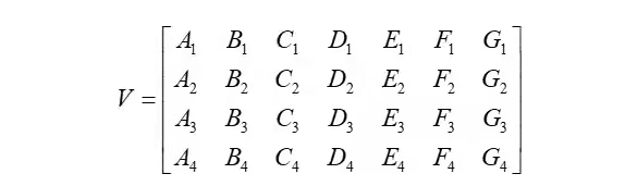 考慮項目整體績效由項目成本績效、質(zhì)量績效、進度績效、協(xié)同績效決定,而七個維度要素在項目實施的不同階段對上述四個特征要素績效的影響程度不同,且隨項目進展呈現(xiàn)動態(tài)變化,綜合構成28個影響系數(shù)矩陣。具體表示如下:
