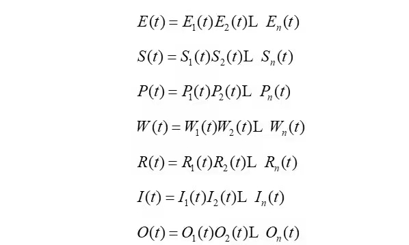 根據(jù)重大科技工程項目產(chǎn)生、發(fā)展全過程,經(jīng)深入調(diào)研分析,從確定項目是什么、執(zhí)行哪些標準、由哪些零部組件構成、都完成哪些工作任務、需要哪些資源保障、用什么工藝技術、由誰來完成等角度出發(fā),將重大科技工程項目基礎要素按七個維度進行了劃分,即:項目技術指標E(t)、項目標準規(guī)范S(t)、產(chǎn)品配套結(jié)構P(t)、項目任務計劃W(t)、保障資源配置R(t)、制造工藝技術I(t)、組織管理效能O(t)。這七個維度的要素即獨立存在,又相互關聯(lián)、相互作用、相互影響,從數(shù)學的角度看其構成一個綜合反映重大科技工程項目某一時間剖面狀態(tài)的系統(tǒng)網(wǎng)絡函數(shù),隨時間演進變化反映重大科技工程項目運動發(fā)展態(tài)勢和目標。
