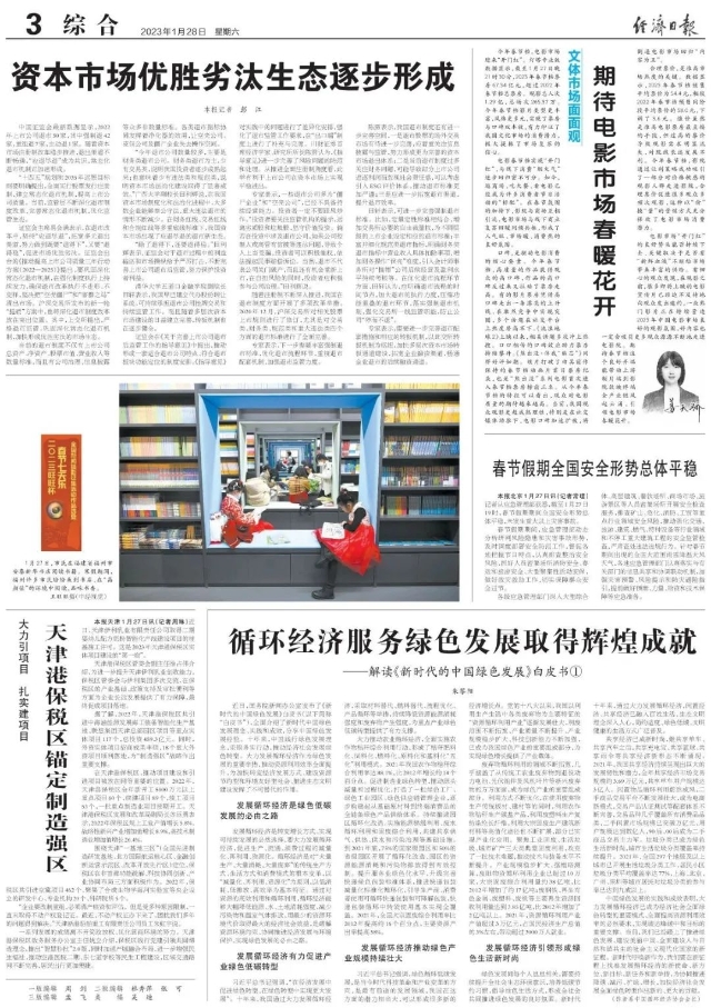 循環(huán)經(jīng)濟(jì)服務(wù)綠色發(fā)展取得輝煌成就 ——解讀《新時(shí)代的中國(guó)綠色發(fā)展》白皮書 朱黎陽(yáng) 近日,國(guó)務(wù)院新聞辦公室發(fā)布了《新時(shí)代的中國(guó)綠色發(fā)展》白皮書(以下簡(jiǎn)稱“白皮書”),全面介紹了新時(shí)代中國(guó)綠色發(fā)展理念、實(shí)踐和成效,分享中國(guó)綠色發(fā)展經(jīng)驗(yàn)。十年來(lái),中國(guó)踐行綠色發(fā)展理念,采取務(wù)實(shí)行動(dòng),推動(dòng)經(jīng)濟(jì)社會(huì)發(fā)展綠色轉(zhuǎn)型。大力發(fā)展循環(huán)經(jīng)濟(jì)作為綠色發(fā)展的重要舉措,推動(dòng)資源利用效率全面提升,為加快轉(zhuǎn)變經(jīng)濟(jì)發(fā)展方式、建設(shè)資源節(jié)約型和環(huán)境友好型社會(huì)、推進(jìn)生態(tài)文明建設(shè)發(fā)揮了不可替代的作用。 01 發(fā)展循環(huán)經(jīng)濟(jì)是綠色低碳發(fā)展的必由之路 發(fā)展循環(huán)經(jīng)濟(jì)是轉(zhuǎn)變?cè)鲩L(zhǎng)方式、實(shí)現(xiàn)可持續(xù)發(fā)展的必然選擇,要大力發(fā)展循環(huán)經(jīng)濟(jì),促進(jìn)生產(chǎn)、流通、消費(fèi)過(guò)程的減量化、再利用、資源化。循環(huán)經(jīng)濟(jì)是對(duì)“大量生產(chǎn)、大量消耗、大量廢棄”的傳統(tǒng)生產(chǎn)方式、生活方式和消費(fèi)模式的根本變革,以“減量化、再利用、資源化”為原則,以低消耗、低排放、高效率為基本特征。通過(guò)對(duì)資源的高效利用和循環(huán)利用,循環(huán)經(jīng)濟(jì)能夠大幅降低能源、水、土地消耗強(qiáng)度,減少污染物和溫室氣體排放,用最少的資源環(huán)境代價(jià)取得最大的經(jīng)濟(jì)社會(huì)效益,是破解資源環(huán)境約束、協(xié)同推進(jìn)經(jīng)濟(jì)發(fā)展與環(huán)境保護(hù)、實(shí)現(xiàn)綠色發(fā)展的必由之路。 02 發(fā)展循環(huán)經(jīng)濟(jì)有力促進(jìn)產(chǎn)業(yè)綠色低碳轉(zhuǎn)型 習(xí)近平總書記強(qiáng)調(diào),“在經(jīng)濟(jì)發(fā)展中促進(jìn)綠色轉(zhuǎn)型、在綠色轉(zhuǎn)型中實(shí)現(xiàn)更大發(fā)展”。十年來(lái),我國(guó)通過(guò)大力發(fā)展循環(huán)經(jīng)濟(jì),采取材料替代、燃料替代、流程優(yōu)化、產(chǎn)品循環(huán)等舉措,持續(xù)降低資源能源消耗強(qiáng)度和廢棄物產(chǎn)生強(qiáng)度,為重點(diǎn)產(chǎn)業(yè)綠色低碳轉(zhuǎn)型提供了有力支撐。 大力推動(dòng)農(nóng)業(yè)循環(huán)經(jīng)濟(jì),全面實(shí)施農(nóng)作物秸稈綜合利用行動(dòng),形成了秸稈肥料化、飼料化、燃料化、原料化和基料化“五化”利用模式。2021年我國(guó)農(nóng)作物秸稈綜合利用率達(dá)88.1%,比2012年增長(zhǎng)約14個(gè)百分點(diǎn)。促進(jìn)制造業(yè)綠色轉(zhuǎn)型,推動(dòng)源頭減量和過(guò)程優(yōu)化,打造了一批綠色工廠、綠色工業(yè)園區(qū)、綠色供應(yīng)鏈管理企業(yè),逐步構(gòu)建起從基礎(chǔ)原材料到終端消費(fèi)品的全鏈條綠色產(chǎn)品供給體系。持續(xù)推進(jìn)園區(qū)循環(huán)化改造,實(shí)施能源梯級(jí)利用、廢水循環(huán)利用和固廢綜合利用,共建共享供氣、供熱、供水和污染治理等基礎(chǔ)設(shè)施。到2021年底,75%的國(guó)家級(jí)園區(qū)和50%的省級(jí)園區(qū)開展了循環(huán)化改造,園區(qū)的資源能源消耗和污染物排放得到有效控制。提升服務(wù)業(yè)綠色化水平,升級(jí)完善快遞綠色包裝標(biāo)準(zhǔn)體系,推進(jìn)快遞包裝減量化、標(biāo)準(zhǔn)化、循環(huán)化,引導(dǎo)生產(chǎn)商、消費(fèi)者使用可循環(huán)快遞包裝和可降解包裝,快遞包裝循環(huán)中轉(zhuǎn)袋使用基本實(shí)現(xiàn)全覆蓋。2021年,全國(guó)大宗固廢綜合利用率比2012年提高約16個(gè)百分點(diǎn),主要資源產(chǎn)出率提高58%。 03 發(fā)展循環(huán)經(jīng)濟(jì)推動(dòng)綠色產(chǎn)業(yè)規(guī)模持續(xù)壯大 習(xí)近平總書記強(qiáng)調(diào),綠色循環(huán)低碳發(fā)展,是當(dāng)今時(shí)代科技革命和產(chǎn)業(yè)變革的方向,是最有前途的發(fā)展領(lǐng)域,我國(guó)在這方面的潛力相當(dāng)大,可以形成很多新的經(jīng)濟(jì)增長(zhǎng)點(diǎn)。黨的十八大以來(lái),我國(guó)以利用生產(chǎn)生活中各類廢棄物為主要特征的“資源循環(huán)利用產(chǎn)業(yè)”逐漸發(fā)展壯大,利廢范圍不斷拓寬、產(chǎn)業(yè)質(zhì)量不斷提升、產(chǎn)業(yè)規(guī)模穩(wěn)步擴(kuò)大、科技創(chuàng)新能力不斷加強(qiáng),已成為我國(guó)綠色產(chǎn)業(yè)的重要組成部分,為實(shí)現(xiàn)綠色增長(zhǎng)提供了產(chǎn)業(yè)載體。 廢棄物循環(huán)利用的領(lǐng)域不斷拓寬,幾乎涵蓋了從傳統(tǒng)工農(nóng)業(yè)廢棄物到退役動(dòng)力電池、光伏組件及風(fēng)機(jī)葉片等新興廢棄物的方方面面,成為綠色產(chǎn)業(yè)的重要組成部分。利用方式不斷優(yōu)化,在使用廢棄物生產(chǎn)傳統(tǒng)板材、建材等的同時(shí),利用農(nóng)作物秸稈生產(chǎn)碳基產(chǎn)品,利用廢塑料生產(chǎn)復(fù)紡滌綸長(zhǎng)纖維,利用大宗固廢生產(chǎn)建筑新材料等高值化途徑也不斷擴(kuò)展,部分已實(shí)現(xiàn)產(chǎn)業(yè)化應(yīng)用。聚焦工業(yè)固廢、生活垃圾、城