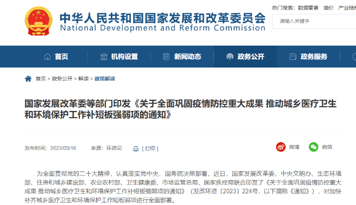 ——《關(guān)于全面鞏固疫情防控重大成果 推動城鄉(xiāng)醫(yī)療衛(wèi)生和環(huán)境保護(hù)工作補(bǔ)短板強(qiáng)弱項的通知》解讀