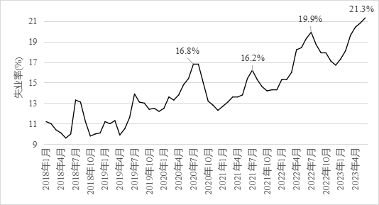 習近平總書記多次強調(diào),就業(yè)是最大的民生,青年就業(yè)工作要擺在更加突出位置。青年是國家的未來與希望,就業(yè)是青年群體最普遍、最迫切的需求之一。當前,我國16~24歲青年失業(yè)率連創(chuàng)新高,不利于經(jīng)濟社會穩(wěn)定發(fā)展。中咨公司課題組研究指出,當前青年失業(yè)率主要由經(jīng)濟增速和通脹水平回落以及供需錯配等因素造成,要充分認識到發(fā)展是解決青年失業(yè)問題的根本動力,做好職業(yè)教育和高等教育“兩頭抓”、不斷豐富就業(yè)信息來源和拓寬就業(yè)渠道、多途徑為失業(yè)青年提供保障,促進青年更好成長、更快發(fā)展。 一、青年失業(yè)率處于近年來高位 (一)當前青年失業(yè)率約為疫情前的兩倍,成為拖累整體失業(yè)率的主因。統(tǒng)計局數(shù)據(jù)顯示,疫情前我國青年失業(yè)率均值穩(wěn)定在10%左右,目前已經(jīng)超過20%。2020年青年失業(yè)率受疫情沖擊,月度峰值升至16.8%,2021年的月度峰值略微回落至16.2%,2022年全年的均值高達17.5%,為社會整體失業(yè)率的3.15倍,其中月度峰值達19.9%,創(chuàng)有記錄以來新高。今年4月,青年失業(yè)率首次突破20%,5月升至20.8%,6月份繼續(xù)攀升至21.3%,環(huán)比上升0.5個百分點,已經(jīng)連續(xù)3個月創(chuàng)記錄新高,超過當月社會整體失業(yè)率的4倍。 圖1 全國16~24歲人口城鎮(zhèn)調(diào)查失業(yè)率變動趨勢圖 (二)失業(yè)率高于全球平均水平及主要經(jīng)濟體。2022年全球青年失業(yè)率平均為14.9%,其中歐洲和中亞地區(qū)為16.4%,亞太地區(qū)為14.9%,北美地區(qū)為8.3%,美國的青年失業(yè)率在2020年4月達到27.4%的峰值,但2022年已經(jīng)穩(wěn)定控制在8.5%以下,全球主要地區(qū)的青年就業(yè)形勢好于我國。 (三)低學歷人群是失業(yè)青年的主力,面臨更大的失業(yè)風險。相較于高校畢業(yè)生,高中及以下的低學歷青年人數(shù)更多,成為影響當前青年失業(yè)率的重要因素。根據(jù)第七次人口普查數(shù)據(jù),當前我國16~24歲的人口數(shù)量剔除在校生后,高中及以下低學歷就業(yè)人數(shù)占比近70%。按照青年人口數(shù)和調(diào)查失業(yè)率推算,青年失業(yè)人口可能超過2400萬人,2022年高校畢業(yè)生剔除繼續(xù)升學人數(shù)后的求職人數(shù)約為950萬人,表明當前失業(yè)青年中低學歷人群的影響不容忽視。此外,2022年青年農(nóng)民工的數(shù)量為2800萬人,該人群的工作崗位不穩(wěn)定更易受經(jīng)濟波動影響,值得引起更多關(guān)注。 圖2 全國青年失業(yè)人數(shù)與高校畢業(yè)生人數(shù)對比圖 二、原因分析 (一)經(jīng)濟增速和通脹水平回落推高失業(yè)率。一方面,疫情以來經(jīng)濟增速回落推高失業(yè)率。奧肯定律揭示出宏觀經(jīng)濟增速和失業(yè)率呈反向關(guān)系,我國目前的經(jīng)濟增速仍未恢復至疫情前的水平,2023年2季度實際GDP環(huán)比增速出現(xiàn)回落,低于預期。同時,我國經(jīng)濟面臨增速換擋,自然會出現(xiàn)失業(yè)率的走高,直接表現(xiàn)為作為初入就業(yè)市場的青年群體就業(yè)難現(xiàn)象。另一方面,通脹水平持續(xù)下滑短期內(nèi)抑制就業(yè)。近期國內(nèi)的通脹水平持續(xù)走低,數(shù)據(jù)顯示,自2023年3月開始,我國CPI已經(jīng)連續(xù)4個月低于1%,6月份,CPI已經(jīng)降至0%,PPI同比下降5.4%,PPI同比降幅連續(xù)6個月不斷擴大。根據(jù)菲力普斯曲線,短期內(nèi)失業(yè)率與通貨膨脹率之間存在明顯的交替關(guān)系,因此,國內(nèi)的低通脹進一步推高了失業(yè)率。 圖3 短期內(nèi)失業(yè)率與通貨膨脹率之間的關(guān)系 (二)供需錯配進一步加劇失業(yè)風險。一是部分行業(yè)用人需求出現(xiàn)萎縮。根據(jù)普查數(shù)據(jù),有近50%的青年人就業(yè)主要集中在制造業(yè)、批發(fā)零售、住宿餐飲等行業(yè),但是近年來受疫情沖擊,居民消費需求恢復緩慢,住宿餐飲等服務行業(yè)收縮明顯,同時勞動密集型制造業(yè)與低端制造外遷,致使其吸納就業(yè)能力下降,對青年群體尤其是低學歷青年就業(yè)形成拖累。二是畢業(yè)生供給持續(xù)創(chuàng)新高。每年高校畢業(yè)生人數(shù)都在持續(xù)遞增,2023年高校畢業(yè)生已經(jīng)達到1158萬人,比本世紀初高出十倍之多,剔除考公、考研、出國的人數(shù),預估仍將有950萬應屆生進入職場,激烈程度每年只增不減。再加上近年外國留學人員回國求職人數(shù)上升,進一步增加了青年求職群體的就業(yè)壓力。三是結(jié)構(gòu)性矛盾突出。一方面,青年學生就業(yè)觀不實際。很多畢業(yè)生對就業(yè)環(huán)境、行業(yè)、城市的期望與實際勞動力市場提供的條件存有落差,青年不再愿意入職傳統(tǒng)的制造業(yè)工廠,甚至出現(xiàn)“3000元工廠招不到藍領(lǐng)工人,寫字樓卻可以招到大學生”的說法。并且近年來越來越多畢業(yè)生競爭有限的公職崗位,耽誤了最佳的就業(yè)時機。另一方面,知識和能力跟不上需求。在信息密集型服務業(yè)、知識密集型服務業(yè)等領(lǐng)域,眾多低學歷青年的知識儲備和能力無法滿足企業(yè)要求。此外,當前高校的教育與社會需求脫節(jié),導致人才培養(yǎng)滯后于產(chǎn)業(yè)結(jié)構(gòu)調(diào)整和市場需求變化。 三、失業(yè)率居高不下不利于社