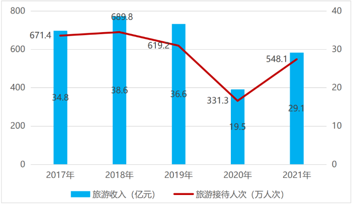 摘要:通過文獻(xiàn)研究、實(shí)地調(diào)研等方法客觀評(píng)估平谷區(qū)旅游經(jīng)濟(jì)發(fā)展現(xiàn)狀、存在的問題,提出可通過設(shè)定旅游經(jīng)濟(jì)量化指標(biāo)、構(gòu)建核心產(chǎn)品體系、加快農(nóng)旅跨界融合、重構(gòu)設(shè)計(jì)-營銷-宣傳體系等措施,促進(jìn)平谷區(qū)旅游經(jīng)濟(jì)實(shí)現(xiàn)更高水平、更優(yōu)質(zhì)發(fā)展。 關(guān)鍵詞:平谷區(qū);旅游經(jīng)濟(jì);謀劃思路 一、引言 伴隨著新冠疫情進(jìn)入“乙類乙管”常態(tài)化防控階段,旅游業(yè)迎來了全面復(fù)蘇的東風(fēng)。平谷區(qū)作為北京市生態(tài)涵養(yǎng)區(qū)之一,是北京市民休閑游憩的理想地帶。北京市政府歷來高度重視生態(tài)涵養(yǎng)區(qū)旅游業(yè)等環(huán)境友好型綠色產(chǎn)業(yè),先后出臺(tái)《北京市人民政府辦公廳關(guān)于健全生態(tài)保護(hù)補(bǔ)償機(jī)制的實(shí)施意見》等政策文件,明確支持發(fā)展生態(tài)旅游、精品民宿、森林康養(yǎng)、田園綜合體等旅游業(yè)態(tài)。目前,延慶區(qū)、懷柔區(qū)、密云區(qū)旅游業(yè)已發(fā)展成為當(dāng)?shù)貞?zhàn)略性支柱產(chǎn)業(yè),旅游收入占地區(qū)生產(chǎn)總值比重均突破8%,其中延慶區(qū)占比高達(dá)13%。與以上三區(qū)相比,平谷區(qū)旅游經(jīng)濟(jì)規(guī)模體量小,對(duì)經(jīng)濟(jì)貢獻(xiàn)總體水平低,亟待尋求有效的發(fā)展路徑。本文系統(tǒng)梳理平谷區(qū)旅游資源特點(diǎn)、市場(chǎng)開發(fā)條件,分析平谷旅游業(yè)發(fā)展現(xiàn)狀及存在的主要問題等,旨在探索提振平谷區(qū)旅游經(jīng)濟(jì)的有效措施,為平谷區(qū)旅游產(chǎn)業(yè)發(fā)展提供參考思路。 二、平谷區(qū)旅游經(jīng)濟(jì)發(fā)展現(xiàn)狀研究 (一)全區(qū)產(chǎn)業(yè)結(jié)構(gòu)情況 平谷區(qū)位于北京市東北部,與天津河北交界,屬于北京的遠(yuǎn)郊,是北京市七大生態(tài)涵養(yǎng)區(qū)之一,生態(tài)保護(hù)是首要任務(wù)也是最根本功能定位。北京市政府自2014年以來,先后發(fā)布4版(2014版、2015版、2018版、2022版)產(chǎn)業(yè)發(fā)展禁限目錄,對(duì)平谷等生態(tài)涵養(yǎng)區(qū)產(chǎn)業(yè)發(fā)展方向提出明確要求。從4版產(chǎn)業(yè)禁限目錄內(nèi)容來看,平谷區(qū)產(chǎn)業(yè)發(fā)展局促條件多、生態(tài)環(huán)保門檻要求高,發(fā)展范疇以低能耗、高附加值產(chǎn)業(yè)為主,但由于地處遠(yuǎn)郊區(qū)產(chǎn)業(yè)集聚、政策環(huán)境、軟硬件配套往往跟不上,對(duì)高精尖類產(chǎn)業(yè)、人才、資金等要素吸引力薄弱。因此,發(fā)展高科技農(nóng)業(yè)和現(xiàn)代服務(wù)業(yè)是平谷區(qū)立足現(xiàn)實(shí)情況和生態(tài)資源優(yōu)勢(shì)的重要選擇。平谷區(qū)統(tǒng)計(jì)公報(bào)數(shù)據(jù)顯示,2018年-2022年的五年間,平谷區(qū)產(chǎn)業(yè)結(jié)構(gòu)不斷優(yōu)化,轉(zhuǎn)型升級(jí)成效顯著,第三產(chǎn)業(yè)已占據(jù)絕對(duì)優(yōu)勢(shì)地位。2022年平谷區(qū)三次產(chǎn)業(yè)結(jié)構(gòu)情況為3.3:22.6:74.1,第三產(chǎn)業(yè)占比遠(yuǎn)高于第一產(chǎn)業(yè)和第二產(chǎn)業(yè),與2018年相比,第三產(chǎn)業(yè)占比提升18個(gè)百分點(diǎn),依托第三產(chǎn)業(yè)帶動(dòng)和促進(jìn)區(qū)域經(jīng)濟(jì)發(fā)展趨勢(shì)效益日益凸顯。 數(shù)據(jù)來源:2018年-2021年平谷區(qū)統(tǒng)計(jì)年鑒,2022年平谷區(qū)國民經(jīng)濟(jì)和社會(huì)發(fā)展統(tǒng)計(jì)公報(bào)。圖1 2018年-2022年平谷區(qū)三產(chǎn)占地區(qū)生產(chǎn)總值比重情況 摒除新冠疫情影響因素,以2017年-2019年數(shù)據(jù)為參考,平谷區(qū)旅游收入對(duì)第三產(chǎn)業(yè)的產(chǎn)值貢獻(xiàn)系數(shù)穩(wěn)步維持在0.2左右,意味著旅游業(yè)產(chǎn)值每增加1個(gè)百分點(diǎn),平谷區(qū)第三產(chǎn)業(yè)產(chǎn)值平均將提升0.2個(gè)百分點(diǎn)。此外,旅游業(yè)還是平谷區(qū)有效帶動(dòng)城鄉(xiāng)居民就業(yè)的重要抓手,直接和間接帶動(dòng)就業(yè)人數(shù)占平谷區(qū)總就業(yè)人口的11.7%,每100個(gè)就業(yè)人口中有11.7人是旅游業(yè)相關(guān)從業(yè)人口。刺激旅游市場(chǎng)消費(fèi)活力、提振旅游經(jīng)濟(jì),對(duì)于夯實(shí)平谷區(qū)第三產(chǎn)業(yè)基礎(chǔ)性產(chǎn)業(yè)地位,乃至提升全區(qū)社會(huì)經(jīng)濟(jì)發(fā)展水平至關(guān)重要。 數(shù)據(jù)來源:2018年-2022年平谷區(qū)統(tǒng)計(jì)年鑒,2022年北京文化和旅游統(tǒng)計(jì)概覽。圖2 2017年-2021年平谷區(qū)旅游收入及其他服務(wù)業(yè)占第三產(chǎn)業(yè)產(chǎn)值比重情況 (二)旅游業(yè)發(fā)展基本情況 疫情前三年(2017年-2019年),平谷區(qū)年均旅游收入為36.7億元,年均接待人次為660萬人次。2018年旅游業(yè)發(fā)展最好,旅游收入38.6億元,同比增長10.9%,接待人次689.8萬人次,同比增長2.7%。2019年因創(chuàng)建國家全域旅游示范區(qū),關(guān)停部分旅游相關(guān)配套與服務(wù)設(shè)施,旅游經(jīng)濟(jì)整體出現(xiàn)小幅回落情況。2020年為疫情暴發(fā)第一年,受行業(yè)大環(huán)境影響,旅游收入與接待人次出現(xiàn)大幅下浮,2021年開始回升,旅游收入