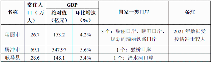 一是區(qū)位優(yōu)勢顯著。該市處于“三亞兩洋”結(jié)合部,是古南方陸上絲綢之路(蜀身毒道)、二戰(zhàn)時期滇緬公路、中緬印史迪威公路和中緬印輸油管線出入境節(jié)點。
