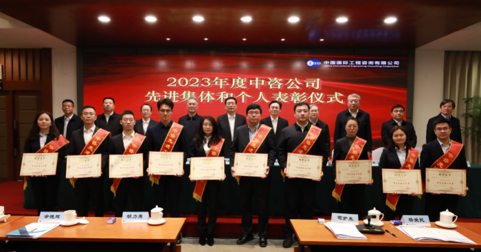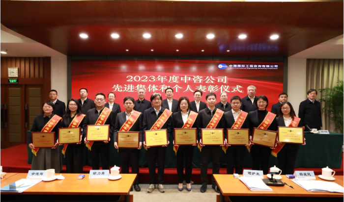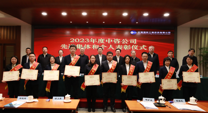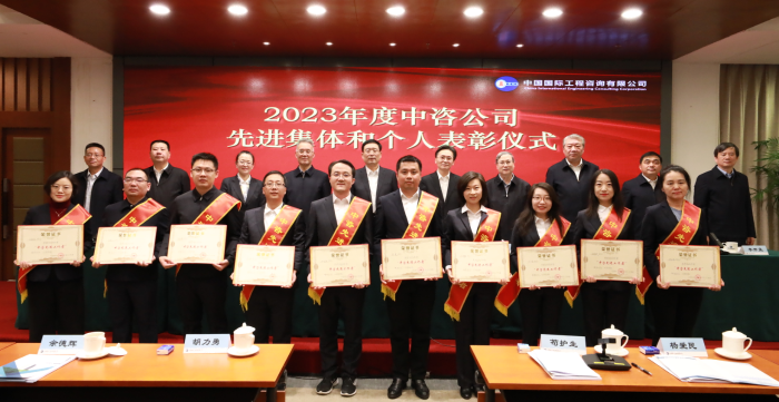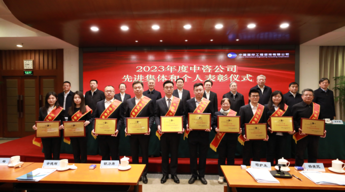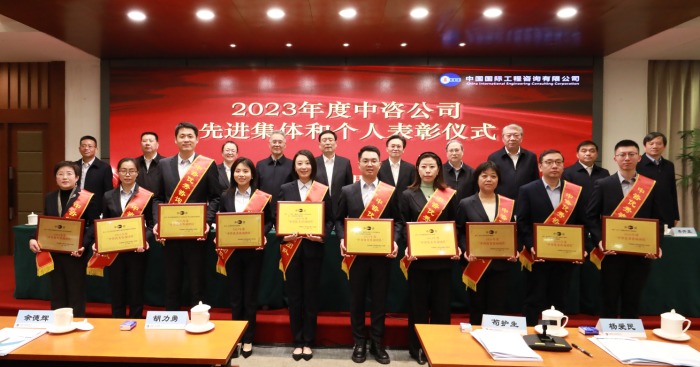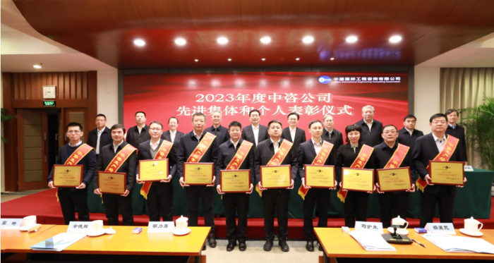 與會(huì)領(lǐng)導(dǎo)為“中咨先進(jìn)集體”獲獎(jiǎng)代表頒獎(jiǎng)