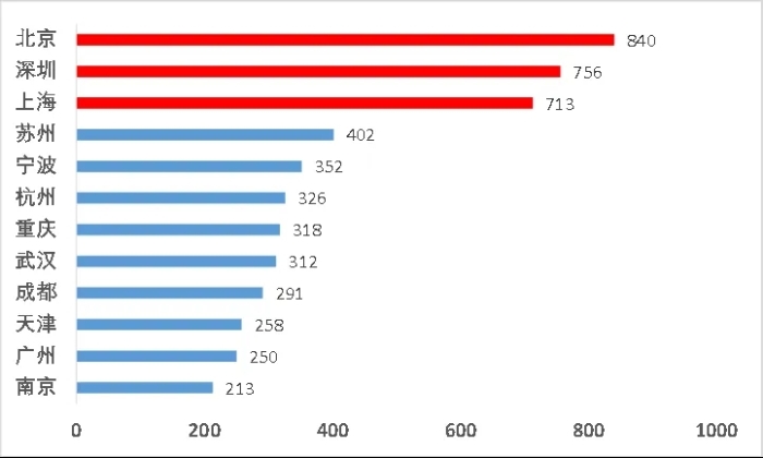 圖1 專精特新“小巨人”企業(yè)前12強城市分布(單位:家)
