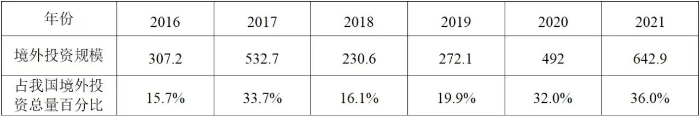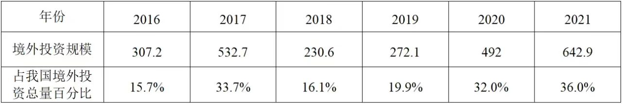 數(shù)據(jù)來(lái)源:商務(wù)部2016-2021年度中國(guó)對(duì)外直接投資統(tǒng)計(jì)公報(bào)