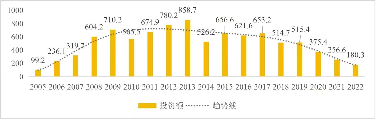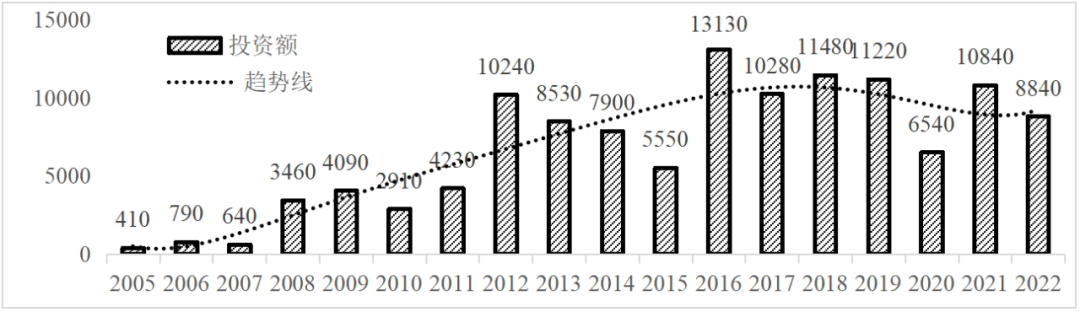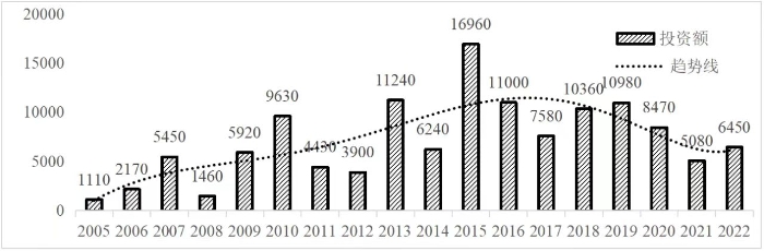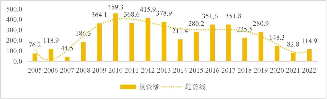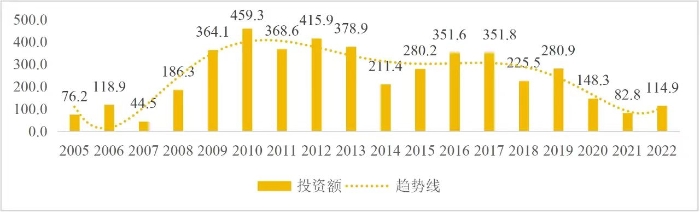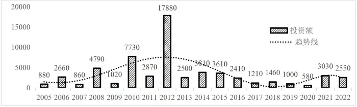 2005-2022年中交集團(tuán)境外投資情況見(jiàn)圖16。