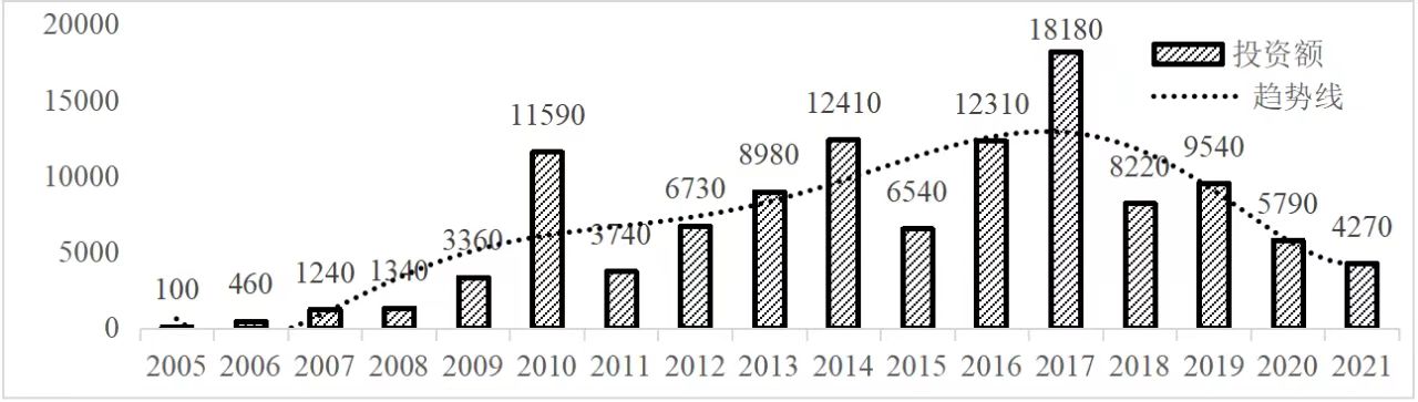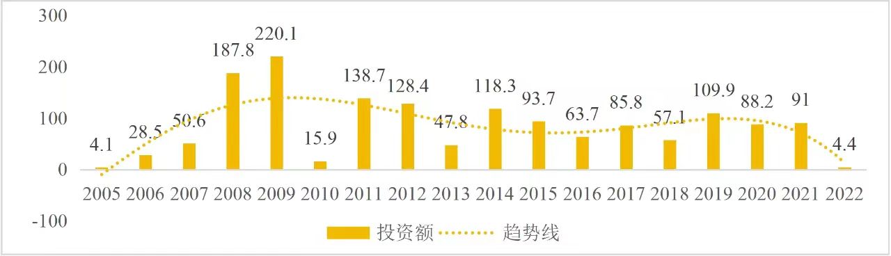 2005-2022年中建集團(tuán)境外投資情況見(jiàn)圖17。