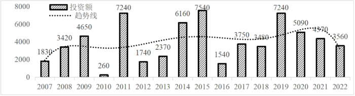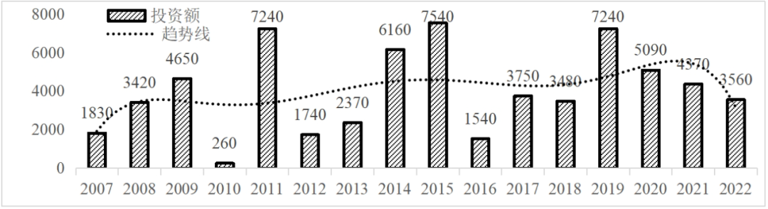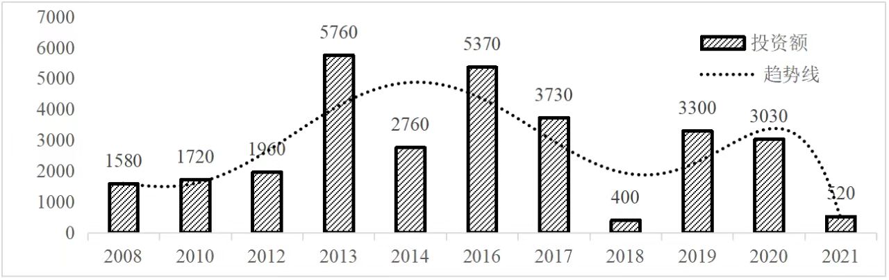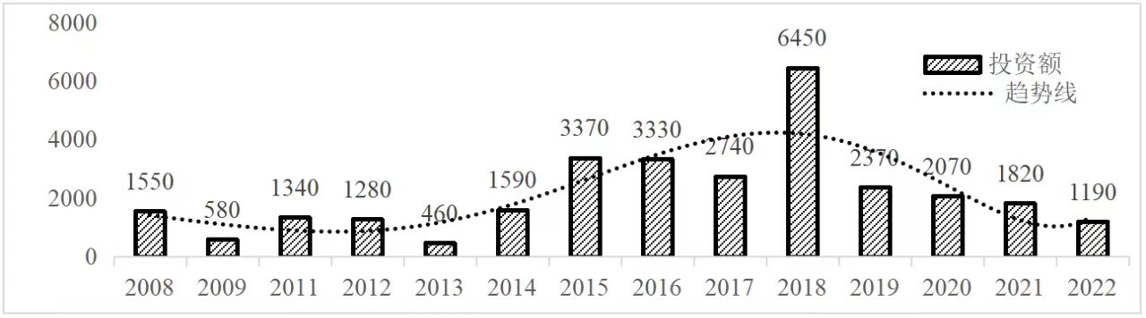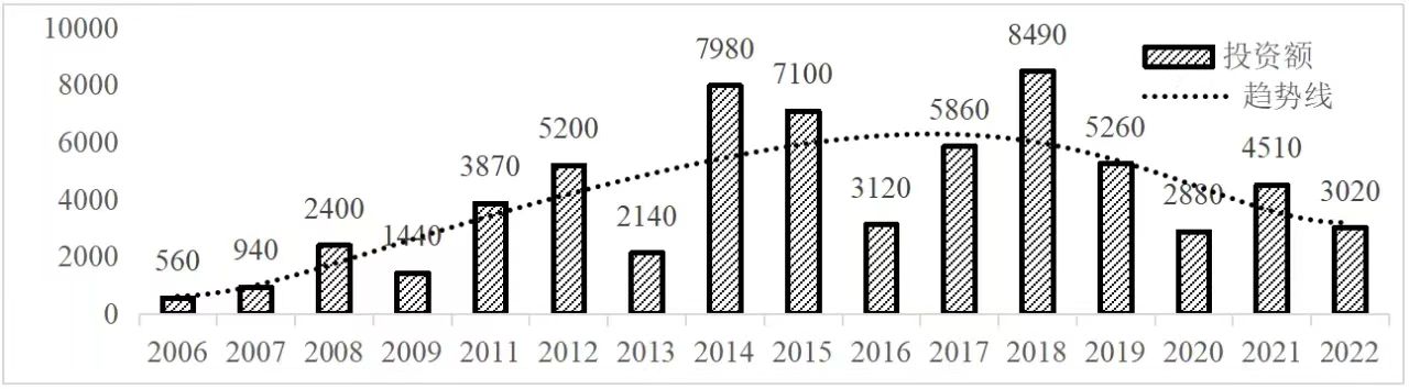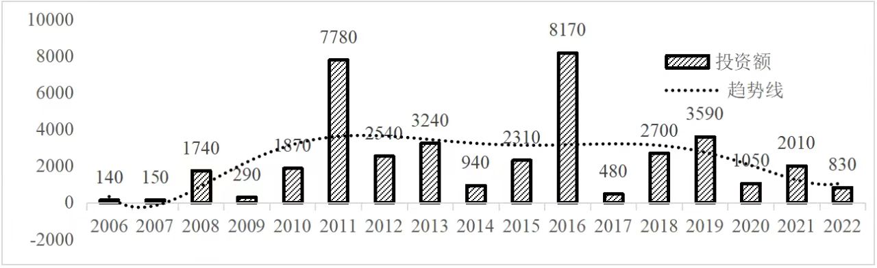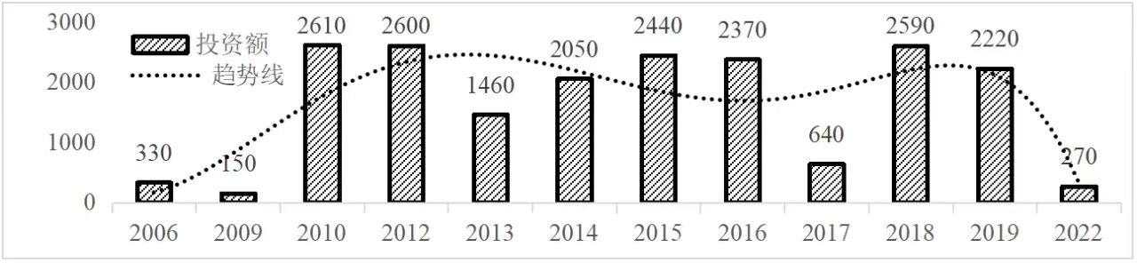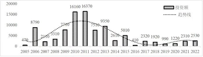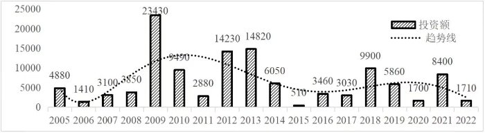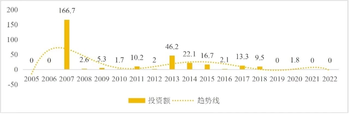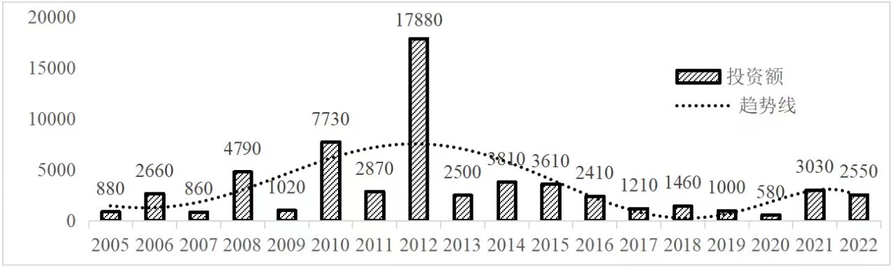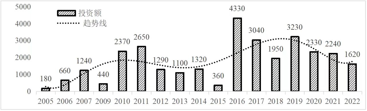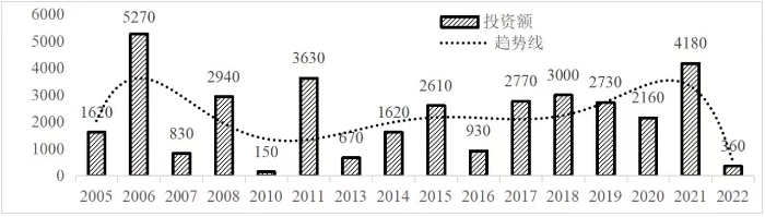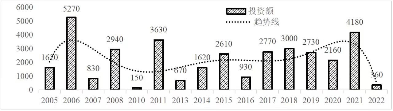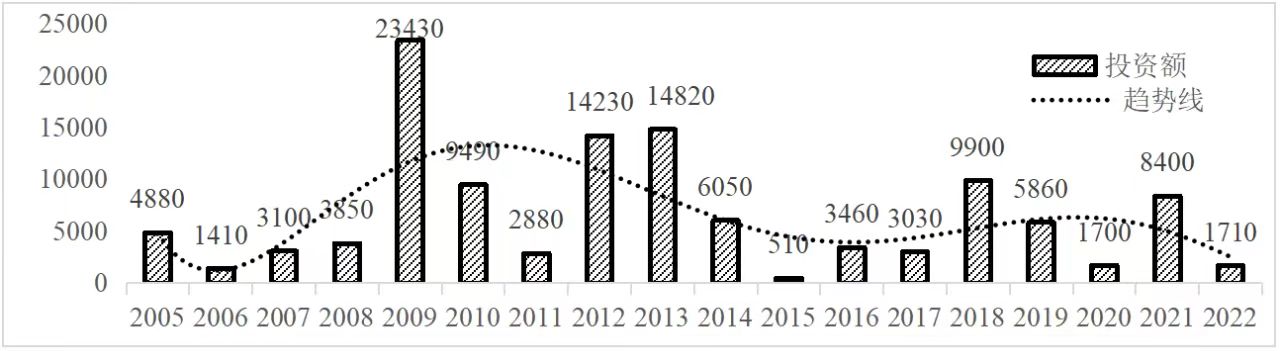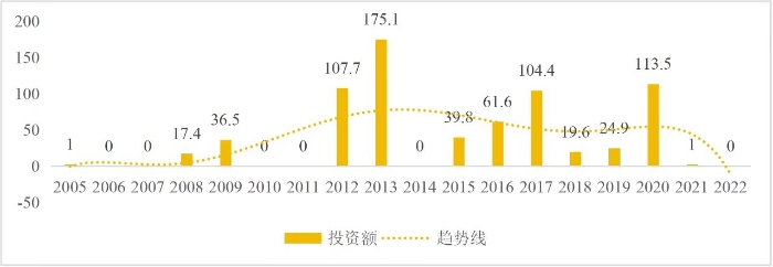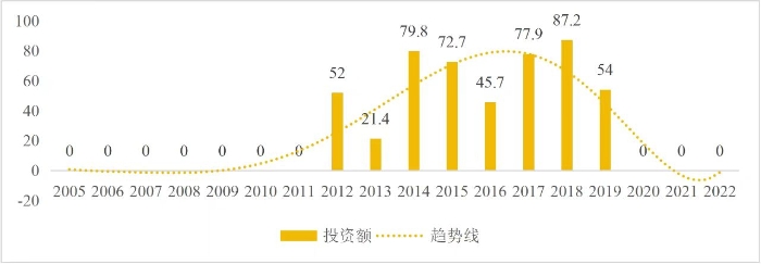 2005-2022年中國(guó)鐵道建筑集團(tuán)境外投資情況見(jiàn)圖18。
