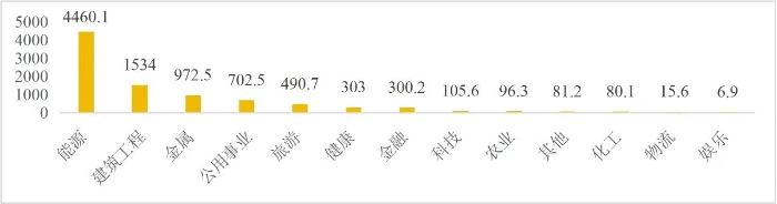 本文對(duì)2005年1月-2022年12月我國(guó)中央企業(yè)境外投資選取能源行業(yè)、建筑工程行業(yè)、金屬行業(yè)、公用事業(yè)、旅游業(yè)等投資規(guī)模位居前列的行業(yè),分行業(yè)情況進(jìn)行了整理。