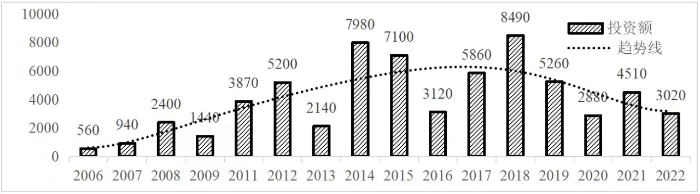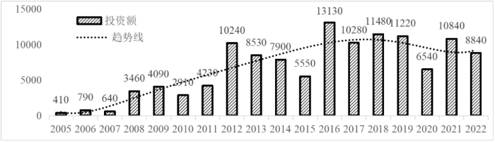 2005-2022年中國(guó)石油境外投資情況見(jiàn)圖9。