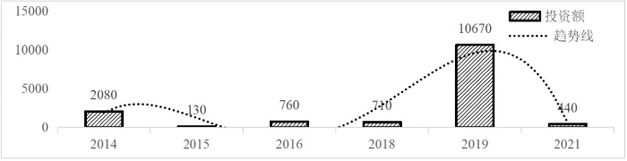 圖19 2005年以來(lái)中國(guó)鐵道工程集團(tuán)境外投資情況 單位:百萬(wàn)美元