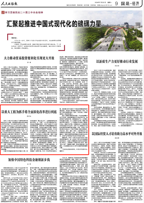 人民政協(xié)報(bào):茍護(hù)生:以重大工程為抓手將全面深化改革進(jìn)行到底