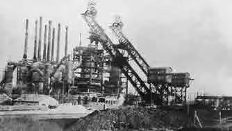 1916年,日本政府批準建立鞍山制鐵所。1917年4月3日舉行“地鎮(zhèn)祭”,動工修建高爐。1918年5月15日,“鞍山制鐵所”正式成立。1919年3月,煉焦廠開始生產(chǎn)焦炭,4月29日,1號高爐點火,鞍山制鐵所正式投產(chǎn)。