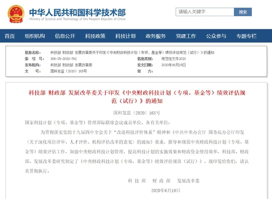 2020年6月,科技部、財(cái)政部、國家發(fā)展改革委聯(lián)合制定的《中央財(cái)政科技計(jì)劃(專項(xiàng)、基金等)績效評(píng)估規(guī)范(試行)》(以下簡稱《績效評(píng)估規(guī)范》)為財(cái)政績效評(píng)價(jià)的開展提供了綱領(lǐng)性指導(dǎo)。雖然該規(guī)范未針對(duì)重大科技工程項(xiàng)目細(xì)化具體的評(píng)價(jià)要求,其內(nèi)容和原則卻為重大科技工程項(xiàng)目的財(cái)政績效評(píng)價(jià)提供了基本遵循,旨在幫助提升項(xiàng)目管理水平和財(cái)政資金使用效果。
