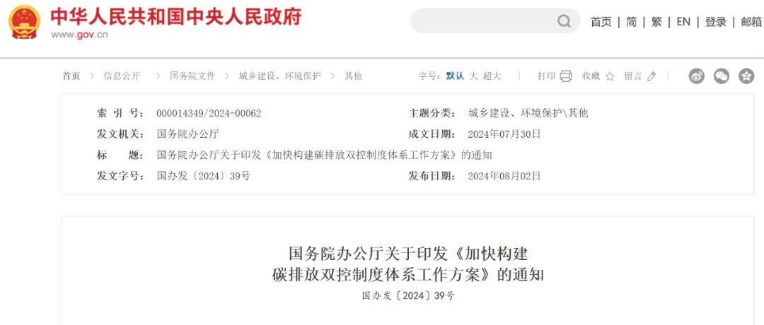 錨定減排目標(biāo) 構(gòu)筑制度體系 碳達(dá)峰碳中和工作邁入新階段 ——《加快構(gòu)建碳排放雙控制度體系工作方案》專(zhuān)家解讀 張英健 木其堅(jiān) 近日,國(guó)務(wù)院辦公廳印發(fā)了《加快構(gòu)建碳排放雙控制度體系工作方案》(國(guó)辦發(fā)〔2024〕39號(hào),以下簡(jiǎn)稱(chēng)《方案》)。《方案》貫徹落實(shí)黨的二十大和二十屆二中、三中全會(huì)精神,對(duì)構(gòu)建碳排放雙控制度體系重點(diǎn)任務(wù)作出系統(tǒng)部署,對(duì)于建立能耗雙控向碳排放雙控全面轉(zhuǎn)型新機(jī)制、積極穩(wěn)妥推進(jìn)碳達(dá)峰碳中和、促進(jìn)經(jīng)濟(jì)社會(huì)發(fā)展全面綠色轉(zhuǎn)型具有重要意義。 一、碳排放雙控制度是實(shí)現(xiàn)碳達(dá)峰碳中和目標(biāo)的關(guān)鍵一招 近年來(lái),各地區(qū)、各部門(mén)堅(jiān)持以習(xí)近平新時(shí)代中國(guó)特色社會(huì)主義思想為指導(dǎo),深入貫徹落實(shí)習(xí)近平總書(shū)記關(guān)于碳達(dá)峰碳中和的重要論述和指示批示精神,推動(dòng)“雙碳”工作取得良好開(kāi)局和積極成效。黨中央、國(guó)務(wù)院印發(fā)《關(guān)于完整準(zhǔn)確全面貫徹新發(fā)展理念做好碳達(dá)峰碳中和工作的意見(jiàn)》,國(guó)務(wù)院發(fā)布《2030年前碳達(dá)峰行動(dòng)方案》,各有關(guān)部門(mén)出臺(tái)重點(diǎn)領(lǐng)域、重點(diǎn)行業(yè)實(shí)施方案和支撐保障方案,并系統(tǒng)部署了加快建立統(tǒng)一規(guī)范的碳排放統(tǒng)計(jì)核算體系、綠色低碳先進(jìn)技術(shù)示范工程、產(chǎn)品碳足跡管理體系等一系列重大政策措施,碳達(dá)峰碳中和“1+N”政策體系構(gòu)建完成,為碳達(dá)峰碳中和目標(biāo)的實(shí)現(xiàn)奠定了堅(jiān)實(shí)的制度基礎(chǔ)。 同時(shí),我國(guó)碳達(dá)峰碳中和工作仍面臨嚴(yán)峻挑戰(zhàn)。受新冠疫情和國(guó)內(nèi)外多重因素影響,“十四五”規(guī)劃《綱要》確定的節(jié)能降碳約束性指標(biāo)完成情況不及預(yù)期。在“十四五”“十五五”交接的關(guān)鍵節(jié)點(diǎn),《方案》首次全面完整闡述了碳排放雙控的制度架構(gòu),及時(shí)回答了碳排放雙控“是什么”和“怎么辦”的問(wèn)題?!斗桨浮返某雠_(tái),標(biāo)志著能耗雙控向碳排放雙控全面轉(zhuǎn)型取得重大進(jìn)展,為當(dāng)前和今后一段時(shí)間的“雙碳”工作明確了工作主線、指明了前進(jìn)方向、謀劃了路徑措施,對(duì)推進(jìn)“雙碳”工作具有重大意義。 二、凝聚各方力量,筑牢碳排放雙控制度的四梁八柱 習(xí)近平總書(shū)記強(qiáng)調(diào),“實(shí)現(xiàn)‘雙碳’目標(biāo)是一場(chǎng)廣泛而深刻的變革,不是輕輕松松就能實(shí)現(xiàn)的”。面對(duì)紛繁復(fù)雜的國(guó)際國(guó)內(nèi)形勢(shì),面對(duì)新一輪科技革命和產(chǎn)業(yè)變革,更需要平衡好發(fā)展和減排、整體和局部、長(zhǎng)遠(yuǎn)目標(biāo)和短期目標(biāo)、政府和市場(chǎng)間的關(guān)系。《方案》立足當(dāng)前實(shí)際,以建立健全地方碳考核、行業(yè)碳管控、企業(yè)碳管理、項(xiàng)目碳評(píng)價(jià)、產(chǎn)品碳足跡等政策制度和管理機(jī)制為重點(diǎn),系統(tǒng)部署了六項(xiàng)重點(diǎn)任務(wù)。 在國(guó)家層面,將碳排放納入總體規(guī)劃。這是將碳達(dá)峰、碳中和目標(biāo)任務(wù)全面融入經(jīng)濟(jì)社會(huì)發(fā)展中長(zhǎng)期規(guī)劃的必然要求?!笆逦濉睍r(shí)期,將碳排放強(qiáng)度降低作為國(guó)民經(jīng)濟(jì)和社會(huì)發(fā)展約束性目標(biāo),合理確定五年規(guī)劃期碳排放目標(biāo),并對(duì)重點(diǎn)任務(wù)和重大工程進(jìn)行統(tǒng)籌部署,開(kāi)展碳排放總量核算。 在地方層面,建立碳排放目標(biāo)評(píng)價(jià)考核制度。要實(shí)現(xiàn)“雙碳”目標(biāo),必須堅(jiān)持全國(guó)一盤(pán)棋,而“指揮棒”就是區(qū)域的碳排放目標(biāo)考核制度。在合理分解指標(biāo)的基礎(chǔ)上,制定出臺(tái)碳達(dá)峰碳中和綜合評(píng)價(jià)考核辦法,統(tǒng)籌建立評(píng)價(jià)考核指標(biāo)體系。推動(dòng)省市兩級(jí)建立碳排放預(yù)算管理制度,強(qiáng)化對(duì)區(qū)域碳排放的管理和調(diào)控能力。 在重點(diǎn)行業(yè)層面,建立碳排放預(yù)警管控機(jī)制。電力、鋼鐵、有色、建材、石化、化工等工業(yè)行業(yè)和城鄉(xiāng)建設(shè)、交通運(yùn)輸?shù)阮I(lǐng)域是碳減排的重點(diǎn)。要合理劃定行業(yè)碳減排的范圍,摸清行業(yè)領(lǐng)域碳排放底數(shù)和減排潛力,常態(tài)化開(kāi)展碳排放監(jiān)測(cè)分析預(yù)警,并視情采取管控措施。 在企業(yè)層面,強(qiáng)化節(jié)能降碳管理制度。重點(diǎn)用能和碳排放單位是碳排放管理的“牛鼻子”。要制定出臺(tái)重點(diǎn)用能和碳排放單位節(jié)能降碳管理辦法,將碳排放管控要求納入現(xiàn)行重點(diǎn)用能單位管理制度。充分發(fā)揮市場(chǎng)機(jī)制調(diào)控作用,擴(kuò)大全國(guó)碳排放權(quán)交易市場(chǎng)覆蓋范圍,探索配額有償分配機(jī)制;健全全國(guó)溫室氣體自愿減排交易市場(chǎng),推動(dòng)更大范圍減排;完善綠證交易市場(chǎng),促進(jìn)綠色電力