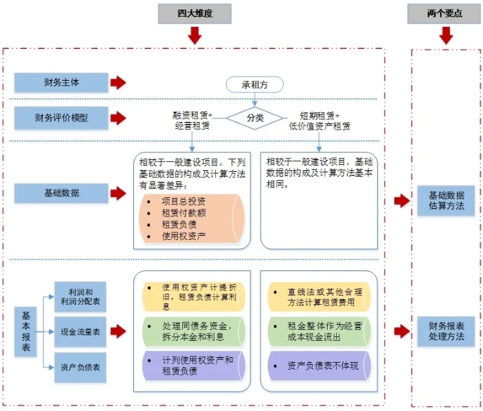 相較于一般建設(shè)項(xiàng)目,承租方財(cái)務(wù)評價(jià)模型涉及項(xiàng)目總投資、租賃付款額、租賃負(fù)債、使用權(quán)資產(chǎn)等特殊基礎(chǔ)數(shù)據(jù)。