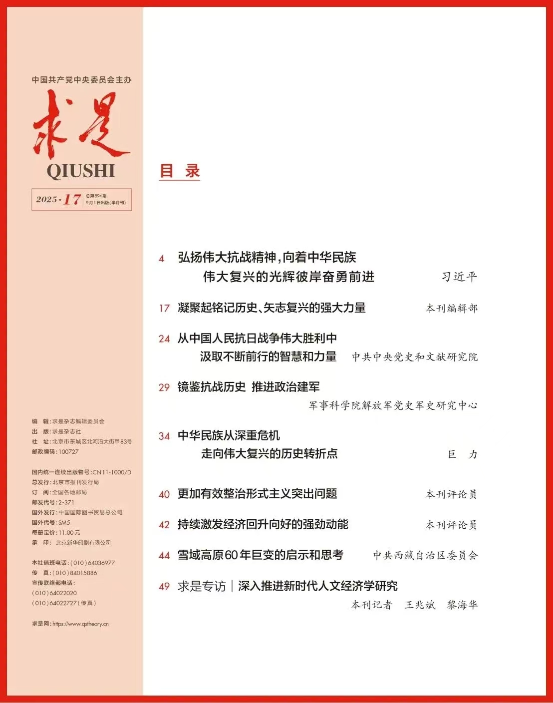 發(fā)布日期:2025-09-01 信息來源:《求是》雜志2025年第17期,9月1日出版 訪問次數(shù): 字號:[ ]
